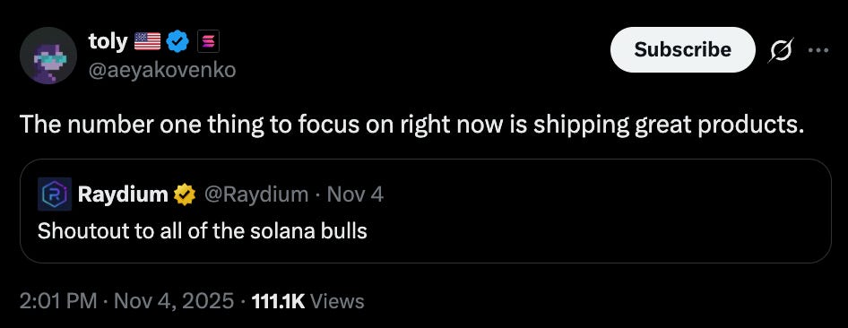 Between market flips and macro noise, one truth still holds: shipping is the only alpha (Toly said it best).