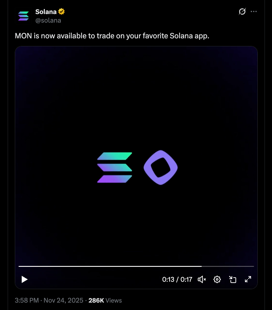 MON (monad) lists on Solana